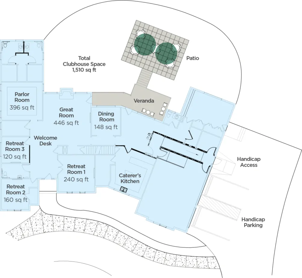 Boasting serenity and calm, our Clubhouse offers the same retreat-like setting you've grown to love from our Conference Center, but with the added benefits of a completely private indoor meeting space that will host up to 30 guests.